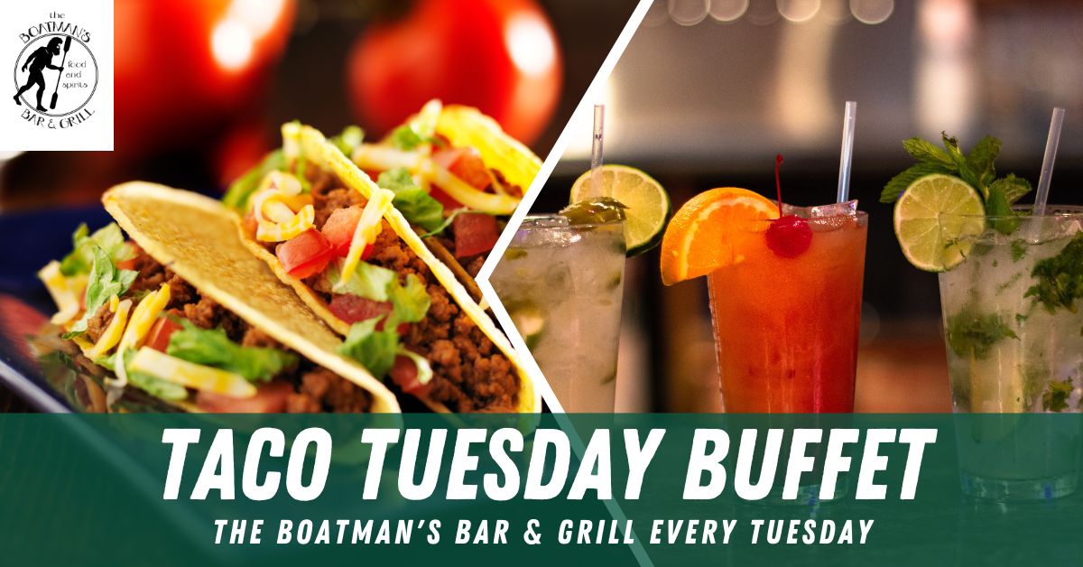 EVERY TUESDAY AT THE BOATMANS BAR AND GRILL – All you can eat taco bar for 16 dollars + $ 2 dollar tequila shots – $4 dollar margaritas.