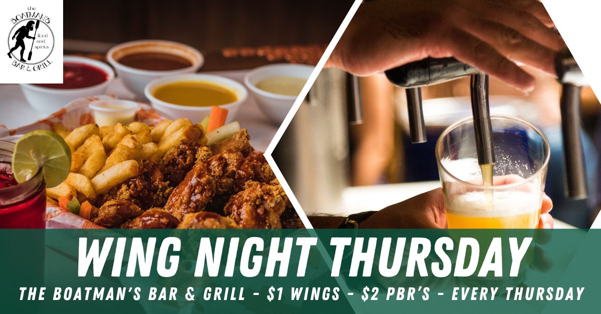 $1 WINGS $2 PBRS EVERY THURSDAY NIGHT AT BOATMAN'S BAR AND GRILL